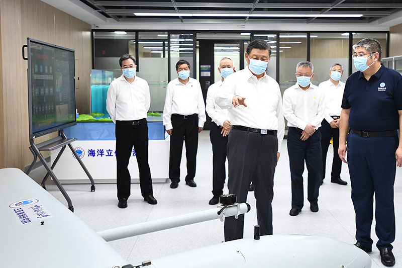 4月10日至13日,中共中央總書記、國家主席、中央軍委主席習近平在海南考察。這是10日下午,習近平在中國海洋大學三亞海洋研究院考察。新華社記者 燕雁 攝