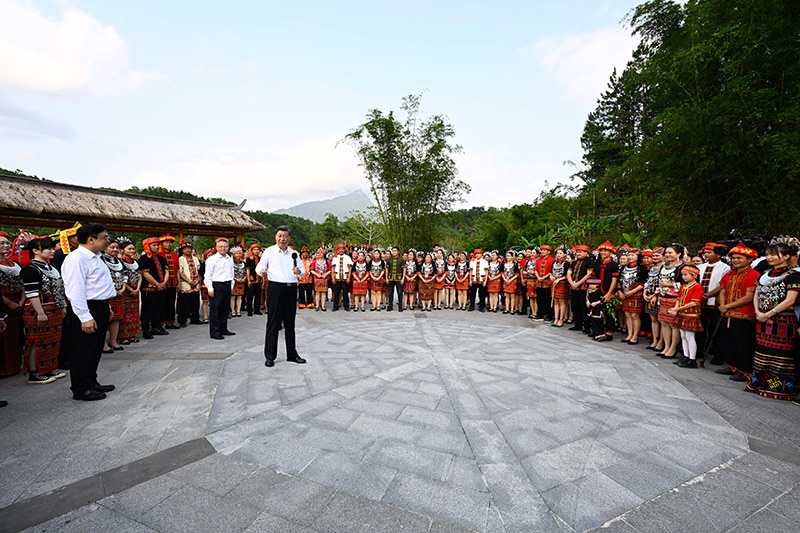4月10日至13日,中共中央總書記、國家主席、中央軍委主席習近平在海南考察。這是11日下午,習近平在五指山市水滿鄉(xiāng)毛納村,同當地干部群眾親切交談。新華社記者 李學仁 攝