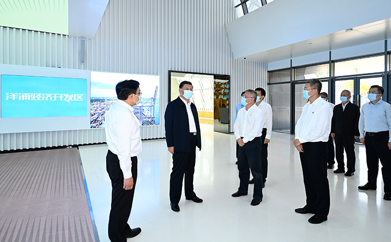 隨后,習近平來到洋浦國際集裝箱碼頭小鏟灘港區(qū),了解港口建設發(fā)展情況,同現場作業(yè)人員、掛職干部代表等親切交流。習近平強調,振興港口、發(fā)展運輸業(yè),要把握好定位,增強適配性,堅持綠色發(fā)展、生態(tài)優(yōu)先,推動港口發(fā)展同洋浦經濟開發(fā)區(qū)、自由貿易港建設相得益彰、互促共進,更好服務建設西部陸海新通道、共建“一帶一路”。他指出,黨中央選派干部來自由貿易港掛職,既體現了黨中央對自由貿易港建設的關心和支持,也是對干部的培養(yǎng)鍛煉,要發(fā)揮掛職干部的積極作用,讓他們在基層一線增長才干。