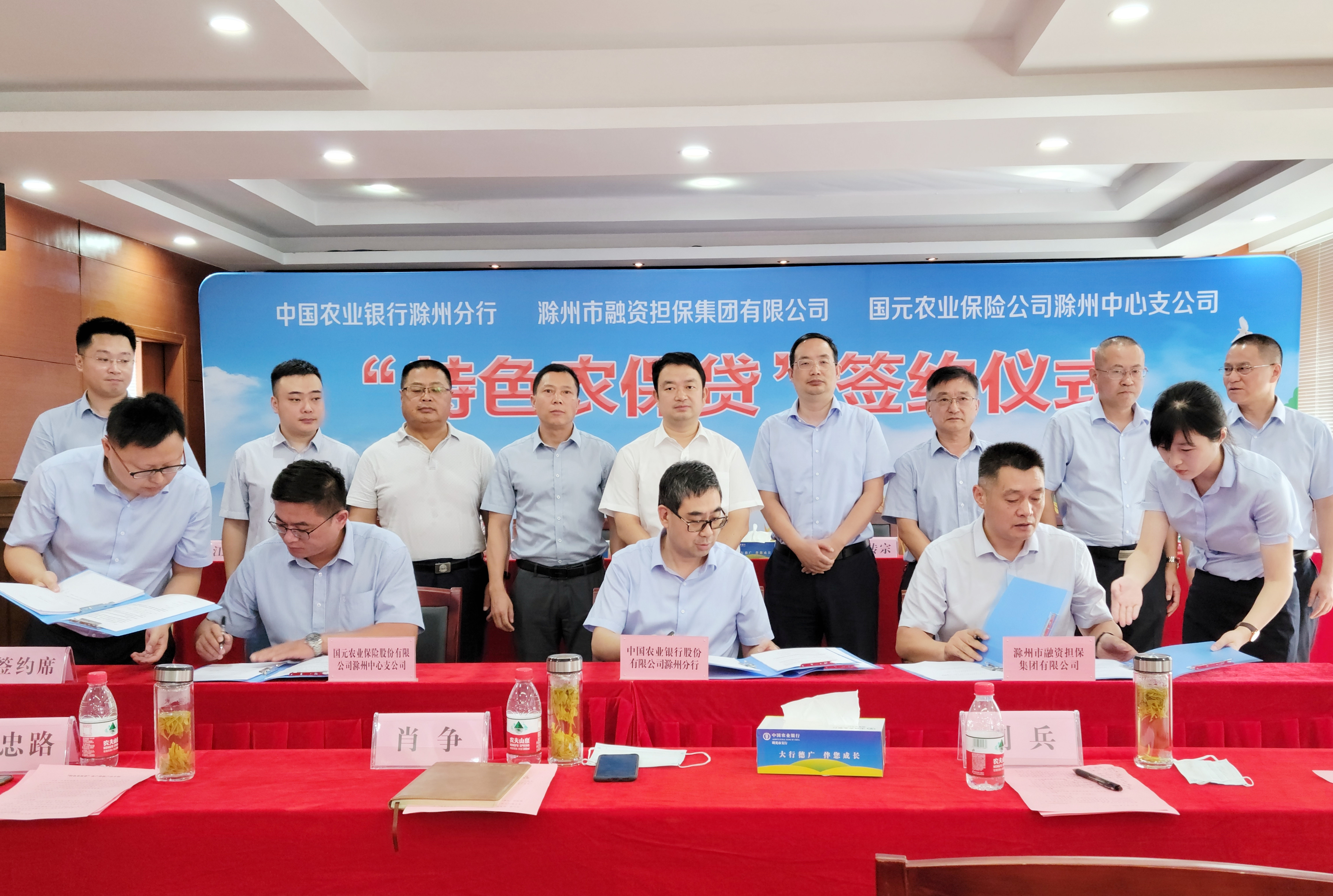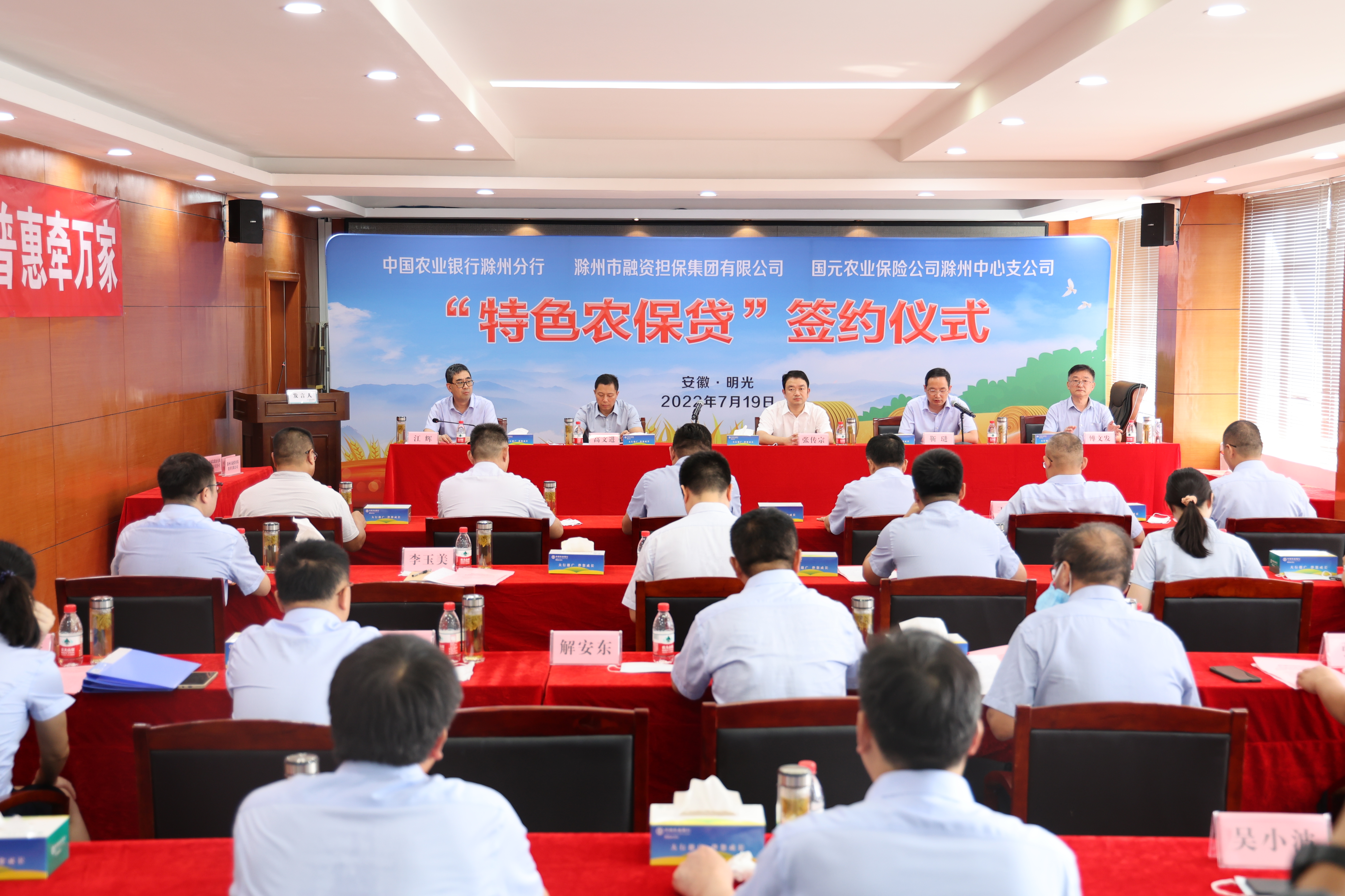 為進(jìn)一步更好地服務(wù)“三農(nóng)”,助力滁州鄉(xiāng)村振興,7月19日,市擔(dān)保集團(tuán)、農(nóng)行滁州分行及國(guó)元農(nóng)保滁州中支在明光市共同舉辦“特色農(nóng)保貸”簽約儀式。明光市委副書記、市長(zhǎng)張傳宗,滁州市擔(dān)保集團(tuán)黨委書記、董事長(zhǎng)、總經(jīng)理高文進(jìn),農(nóng)行滁州分行黨委書記、行長(zhǎng)靳琎,國(guó)元農(nóng)保滁州中支黨支部書記傅文發(fā)等有關(guān)領(lǐng)導(dǎo)及部分農(nóng)戶代表出席簽約儀式。